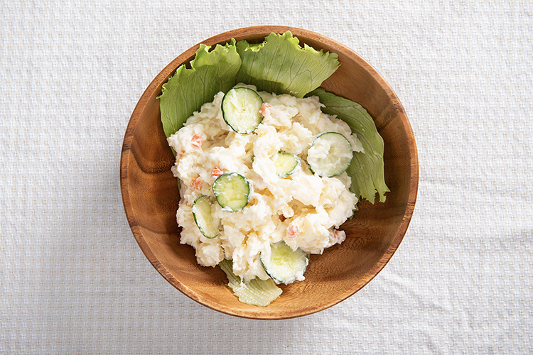 1つ目は、当社が自信を持ってお届けする「ロングライフサラダ」です。ポテトサラダやパスタサラダ、ツナサラダなど、お客様のお好みに合わせたラインナップを取り揃えており、日本全国に配送しております。その特徴はなんといっても賞味期限の長さです。通常のサラダとは違い、45~60日という長い期間、おいしさをキープすることができます。ホテルやコンビニ、パン屋など、幅広いお客様にご利用いただいております。